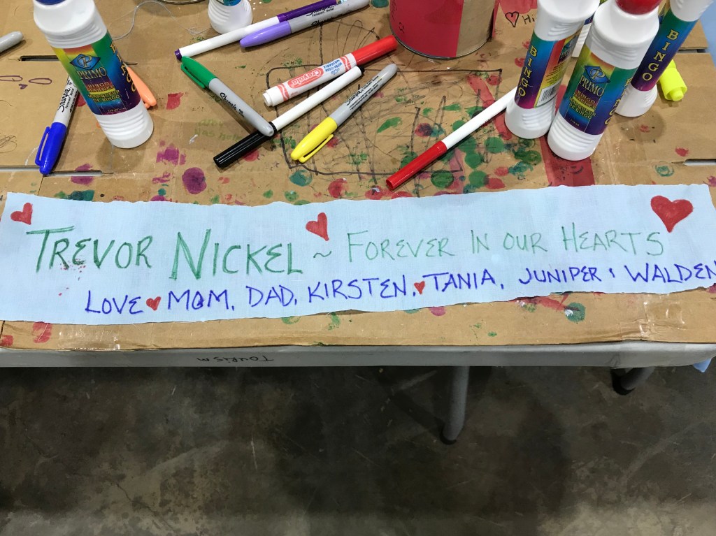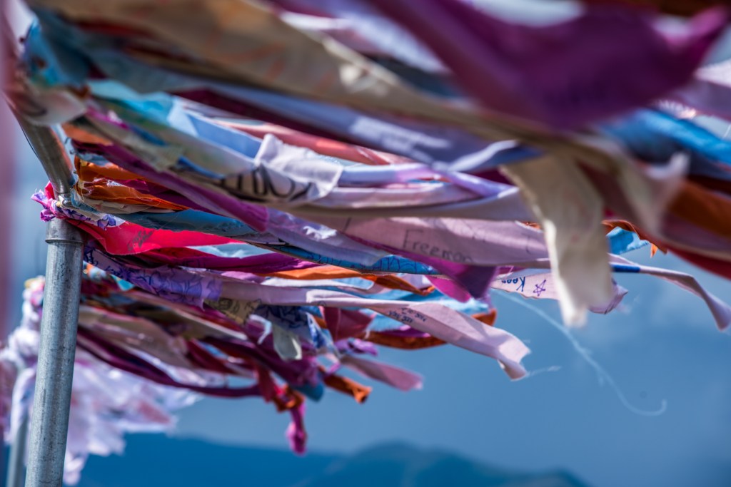 This was juxtaposed with some dashing around trying to get my 7 year-old an appropriately-sized shirt for the kids race, and a much more serious and emotional moment writing a prayer flag for the top of Mt. Hamel in memory of my late husband Trevor Nickel. I had already seen a huge raven unceremoniously cawing at me from the rooftop of the house beside where we parked the car, and a rainbow on the way in. I couldn’t help but feel like he was sending me good luck vibes, all the while wondering what he would be thinking of the fact that I was actually here to do this (well, mostly I think he’d be saying something like “YESSSSS! You are awesome! Go Tania go!”).