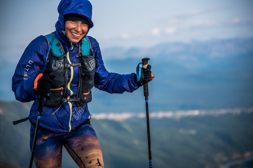 I got to the bottom and there was this group of volunteers holding up a giant sign that said “Pow!” One of them was complaining that her arm hurt from holding the sign. Then she realized I could hear her and that her complaint in the context of soloing the race was sort of ridiculous and we all burst out laughing. I gave the sign a huge high five, thanked the volunteers enthusiastically and carried on into town. I remembered how dead my legs felt after my Leg 2 PB a couple of years ago and was pleased with how I felt. I was also about 15 minutes ahead of schedule, and looking very much forward to seeing my crew. As I came into transition, it started to rain. Fortunately my crew had a nice tent and I changed my shoes, ate some food, checked in. “Do you want Tylenol?” Janelle asked. “Nah!” I replied, “I feel good!” I also decided I wanted to keep my poles, which was not on my race plan. Too quickly, it was time to go again, but off I went.
