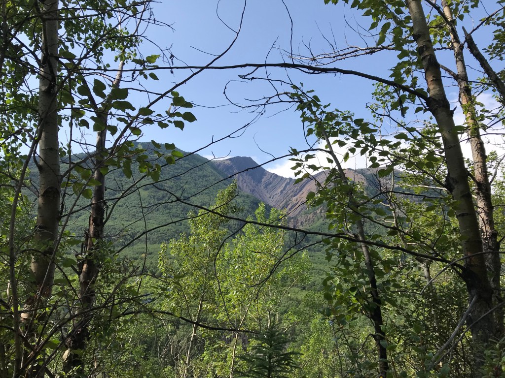 The sun had been down for awhile but daylight lingers for a long time in the summer in Grande Cache, so it was still dusky when I finally made it to the Ambler loop aid station. I popped out of the bushes and it felt like a party. There were so many people! Runners and volunteers. Music. And SOUP. Hot, delicious, salty soup. Might be the best thing I’ve ever tasted. Ok. Was it better than the chips? I can’t decide. I think it was. By this point I didn’t want to eat anything in my pack, pretty much all of which was sweet. Something fresh and savoury was just what the doctor ordered. I had caught back up to August 5th – “Hey! August 6th!” he shouted. He’d found another friend. I started off down the Ambler loop road and for the first time in awhile, buoyed by the soup, felt myself cruising along at a decent pace. However, I failed to realize how much of a downhill this is. Until I got to the end and had to come back up the trail with the puddles. I did remember the puddles (they’re always in this spot, even on a dry year), so that wasn’t a surprise. I finally had to power up the headlamp. I could hear August 5th and his buddy behind me, but they weren’t quite close enough for comfort so I sang loudly and let out periodic whoops to let any wildlife know I was there as the trail closed back in. I made it back to the aid station in good time. I couldn’t resist stopping for more soup, even though this soup was now too hot and I had to wait for it to cool enough to slurp. I was getting antsy. My time goal was closing, but I knew I’d be able to run a reasonable pace down the road. So off I went. However, the cruising pace I’d been able to put in on this leg when I’d done it as a relay runner was far from my reach now. This time, Beaver Dam Road lived up to it’s reputation. It went on FOREVER. I leapfrogged with August 5th and his friend. They must’ve stopped to pee three times, each pulling to a side of the road. I’d pass them, and then they’d catch back up and pass me. My pace was steadier, but they were ultimately moving more quickly. I had to pee that entire time but I didn’t want to have to go into the dark bushes to do so, so I just kept going, joking every time I passed them pulled over that it wasn’t fair to be a girl who had to pee. By the time we reached the bottom they’d pulled a ways ahead and I was on my own again.